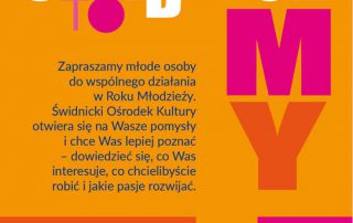 „Świdnica to MY” – pod tym hasłem zapraszamy młode osoby do wspólnego działania w Roku Młodzieży. Świdnicki Ośrodek Kultury otwiera się na Wasze pomysły i chce Was lepiej poznać – dowiedzieć się, co Was interesuje, co chcielibyście robić i jakie [...]