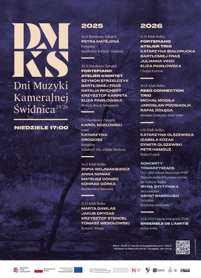 Dni Muzyki Kameralnej powróciły do Świdnicy po 18-letniej przerwie w 2024, wypełniając istotną lukę w muzycznym życiu miasta. Tegoroczna edycja cyklu koncentruje się na szczegółowym i świadomym podejściu do interpretacji utworów. Artyści sięgają po historyczne praktyki wykonawcze, poszukując dla muzyki XIX i początków XX wieku adekwatnych środków stylistycznych oraz oryginalnego instrumentarium. Jest to repertuar, który bardzo rzadko można usłyszeć np. na instrumentach smyczkowych wyposażonych w struny jelitowe, co standardem było jeszcze do czasów II wojny światowej. Odtworzenie tych zapomnianych praktyk jest przedsięwzięciem unikatowym, zarówno w Polsce, jak i w całej Europie, co nadaje cyklowi wyjątkowy i odkrywczy charakter.