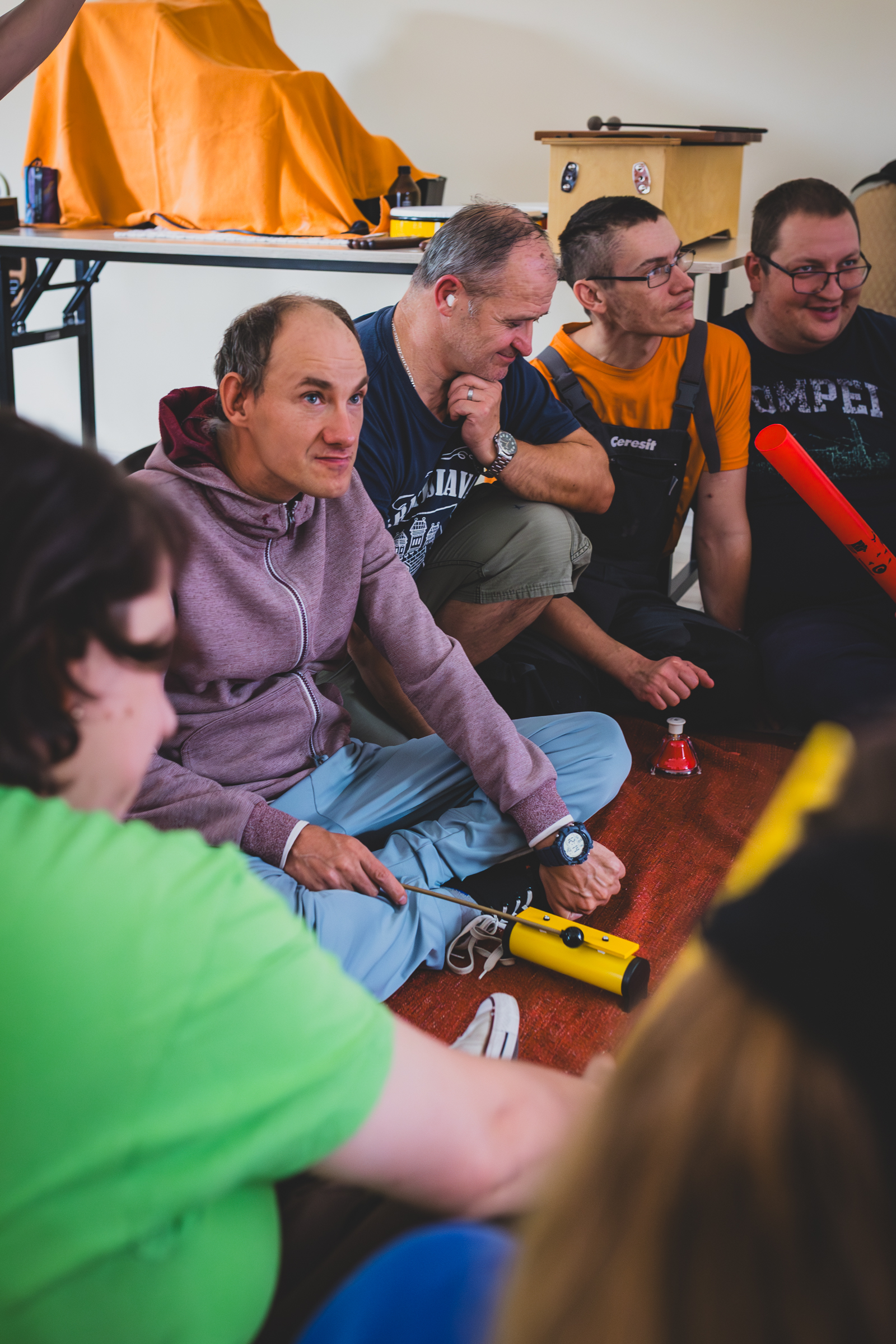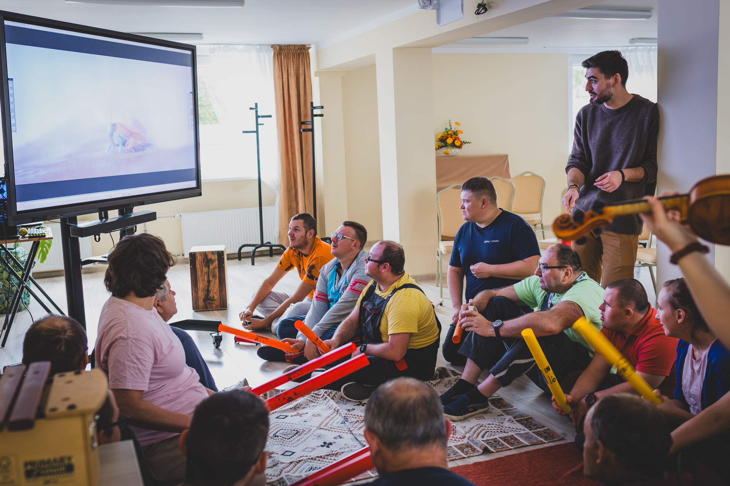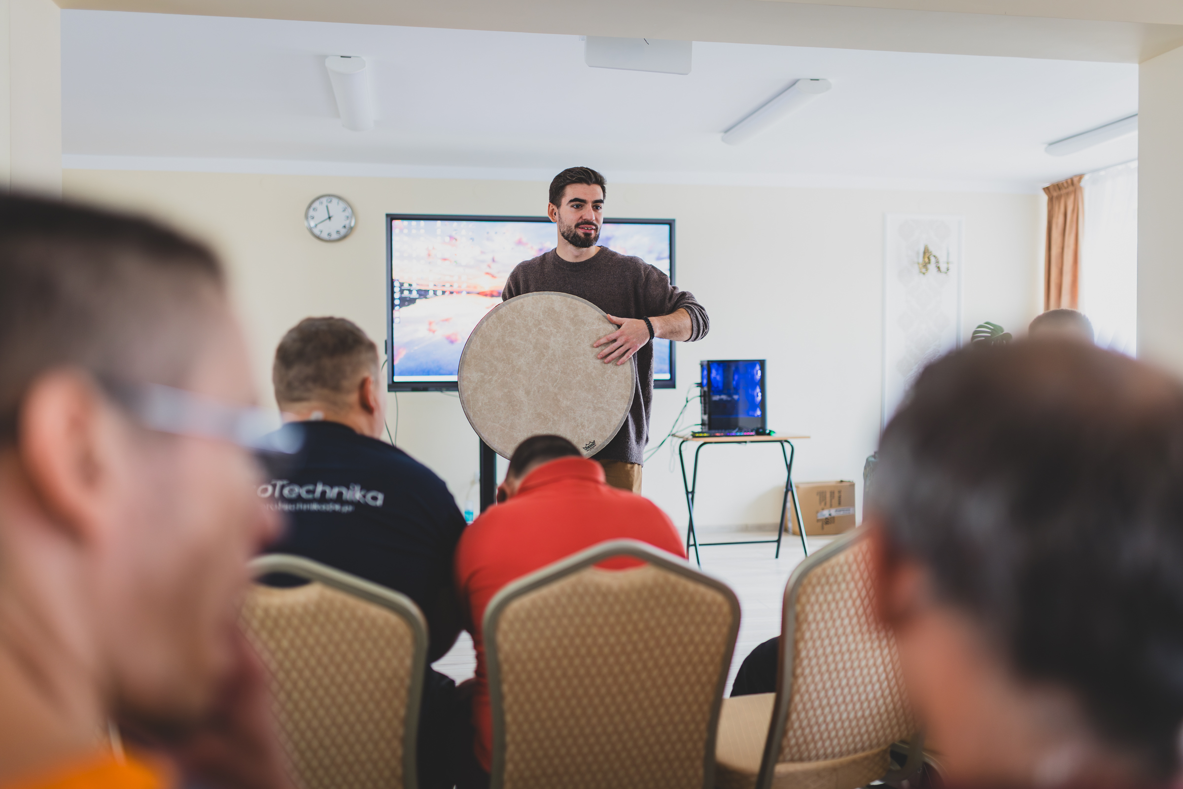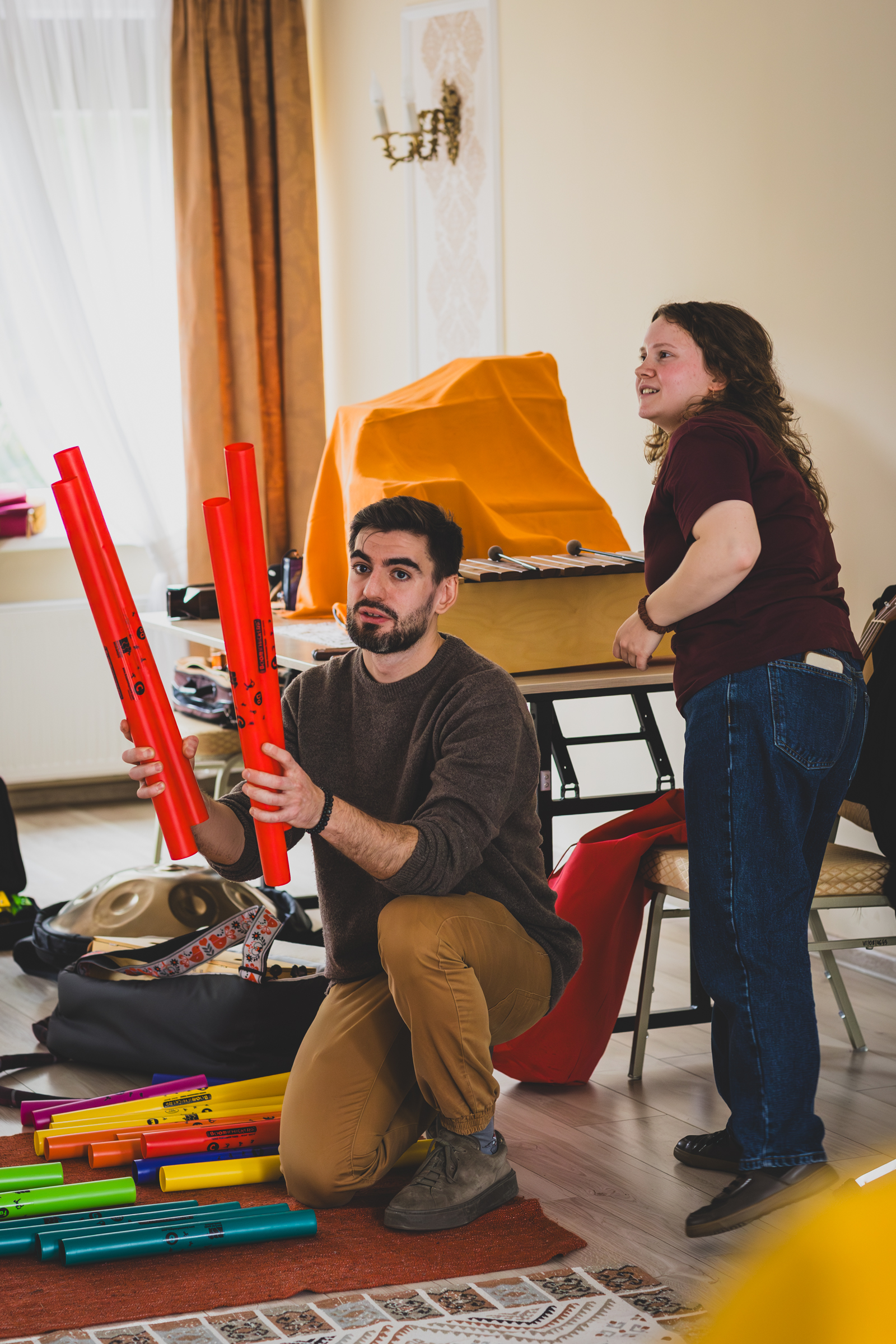 Każdy uczestnik otrzymał instrument i miał okazję zsynchronizować dźwięk z obrazem, tworząc autorską ścieżkę dźwiękową. Ćwiczenie połączyło naukę z zabawą i pokazało, że słuchanie to znacznie więcej niż tylko słyszenie.
