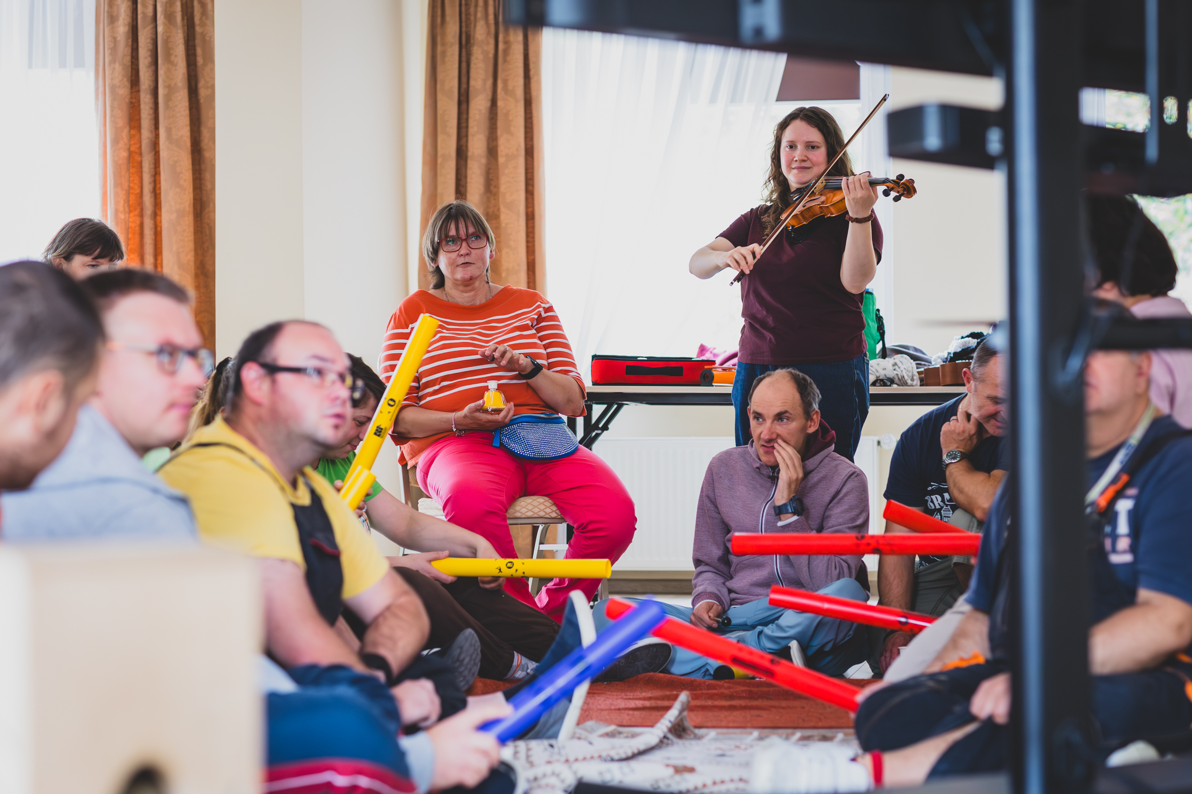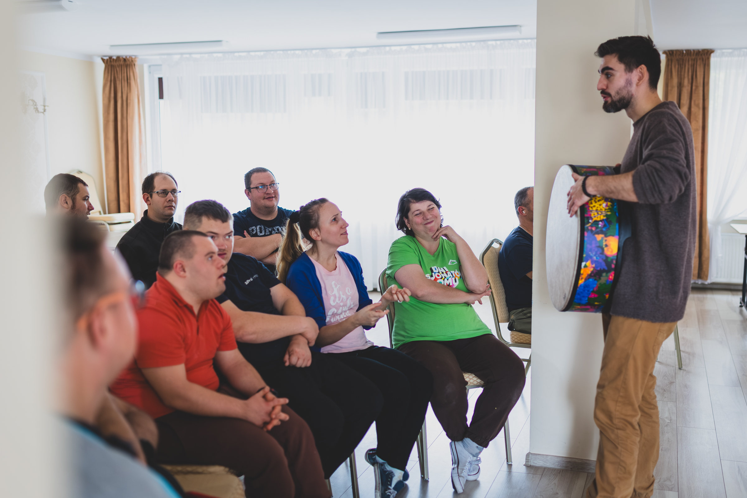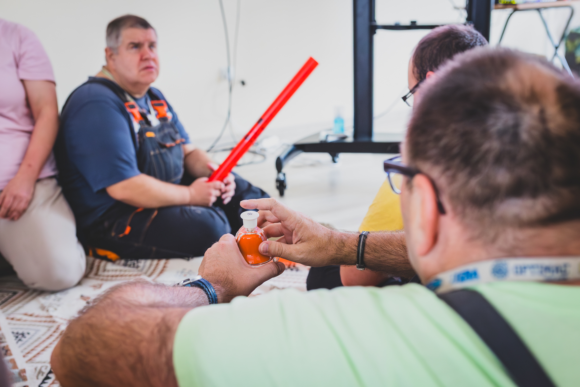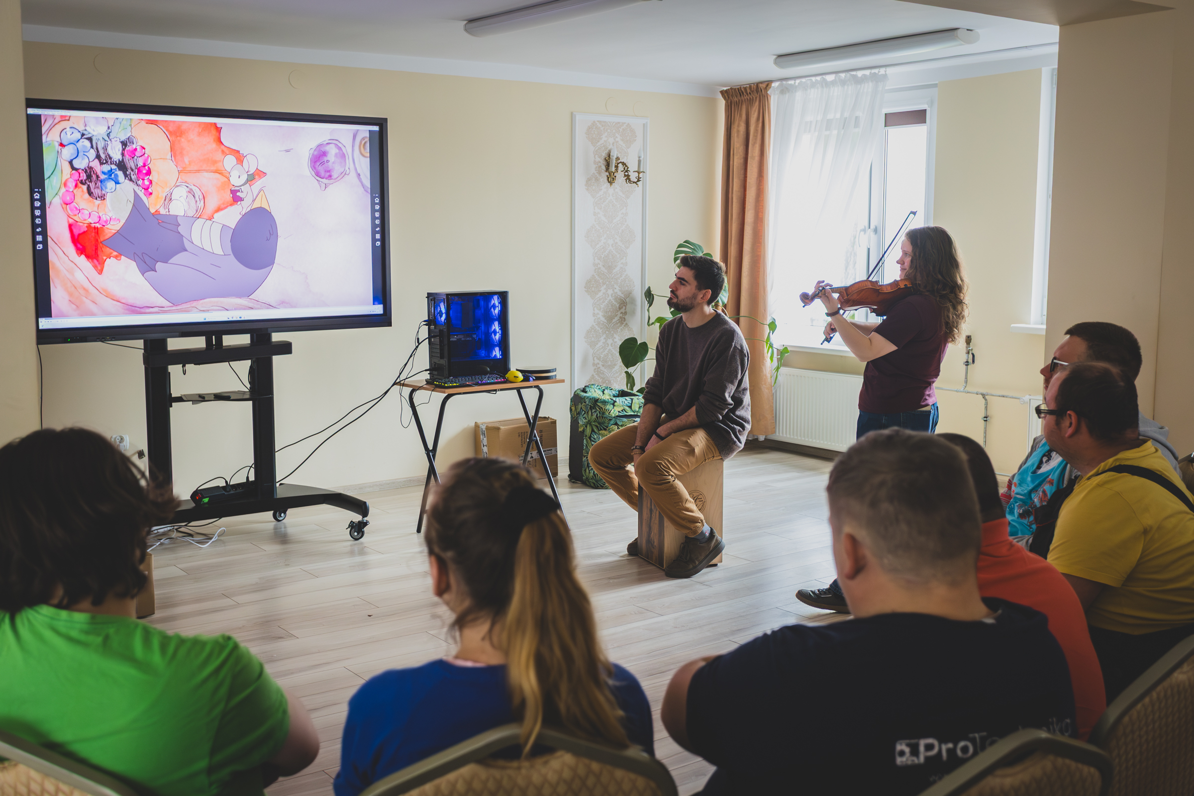 Każdy uczestnik otrzymał instrument i miał okazję zsynchronizować dźwięk z obrazem, tworząc autorską ścieżkę dźwiękową. Ćwiczenie połączyło naukę z zabawą i pokazało, że słuchanie to znacznie więcej niż tylko słyszenie.