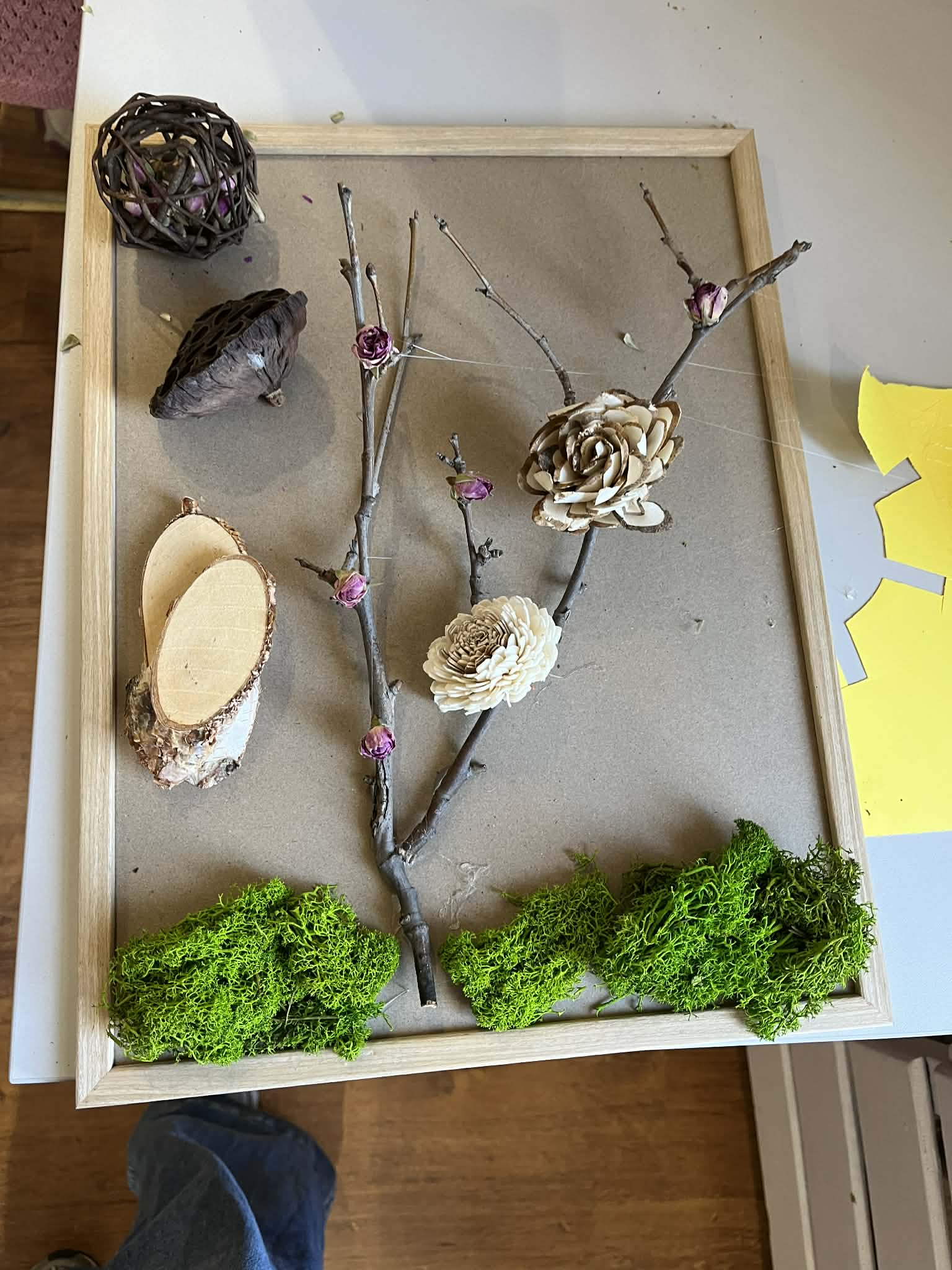 Mech, kora, kwiaty i kamienie stały się główną częścią dzieł.