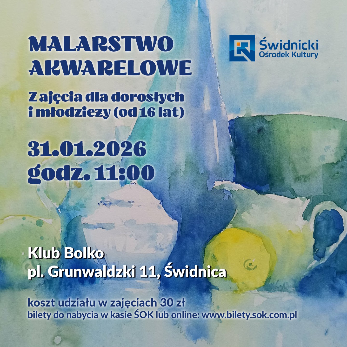 Tym razem na warsztaty akwarelowe zapraszamy do Klubu Bolko. Zajmiemy się tematem nie podejmowanym jeszcze na naszych zajęciach - akwarelą kulinarną. Warsztaty prowadzi Marta Ciućka. Materiały (szkicownik, papier najlepiej formatu A3, farby) oraz narzędzia (ołówek B i HB, [...]