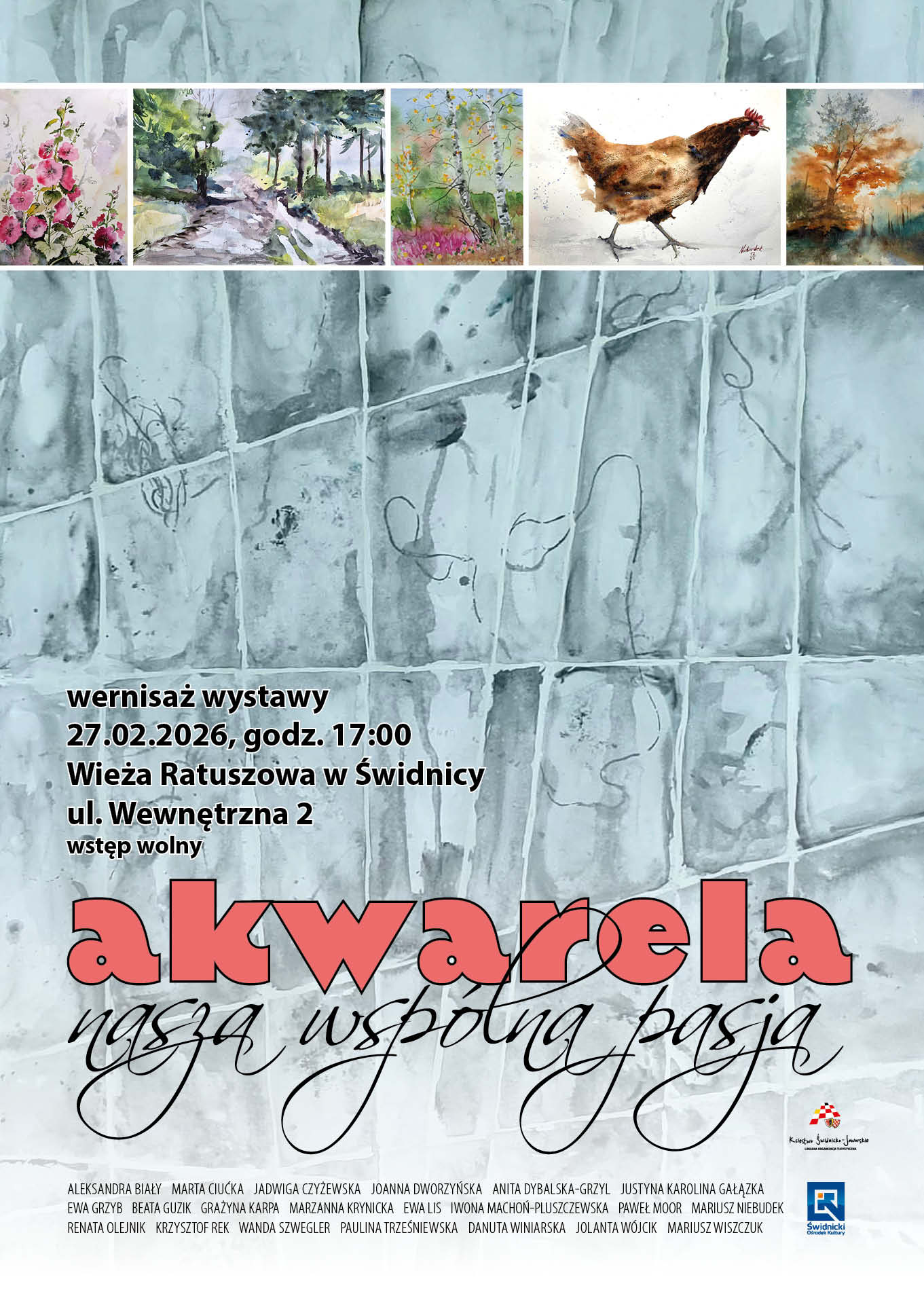 | wstęp wolnyOddajemy w Państwa ręce wystawę wyjątkową – nie tylko ze względu na prezentowane prace, lecz przede wszystkim na historię, która za nimi stoi. „Akwarela – nasza wspólna pasja” to efekt kilkuletniej drogi grupy amatorów akwareli działającej przy Świdnickim Ośrodku Kultury, z którą mam przyjemność pracować od samego początku jako opiekunka i koordynatorka.