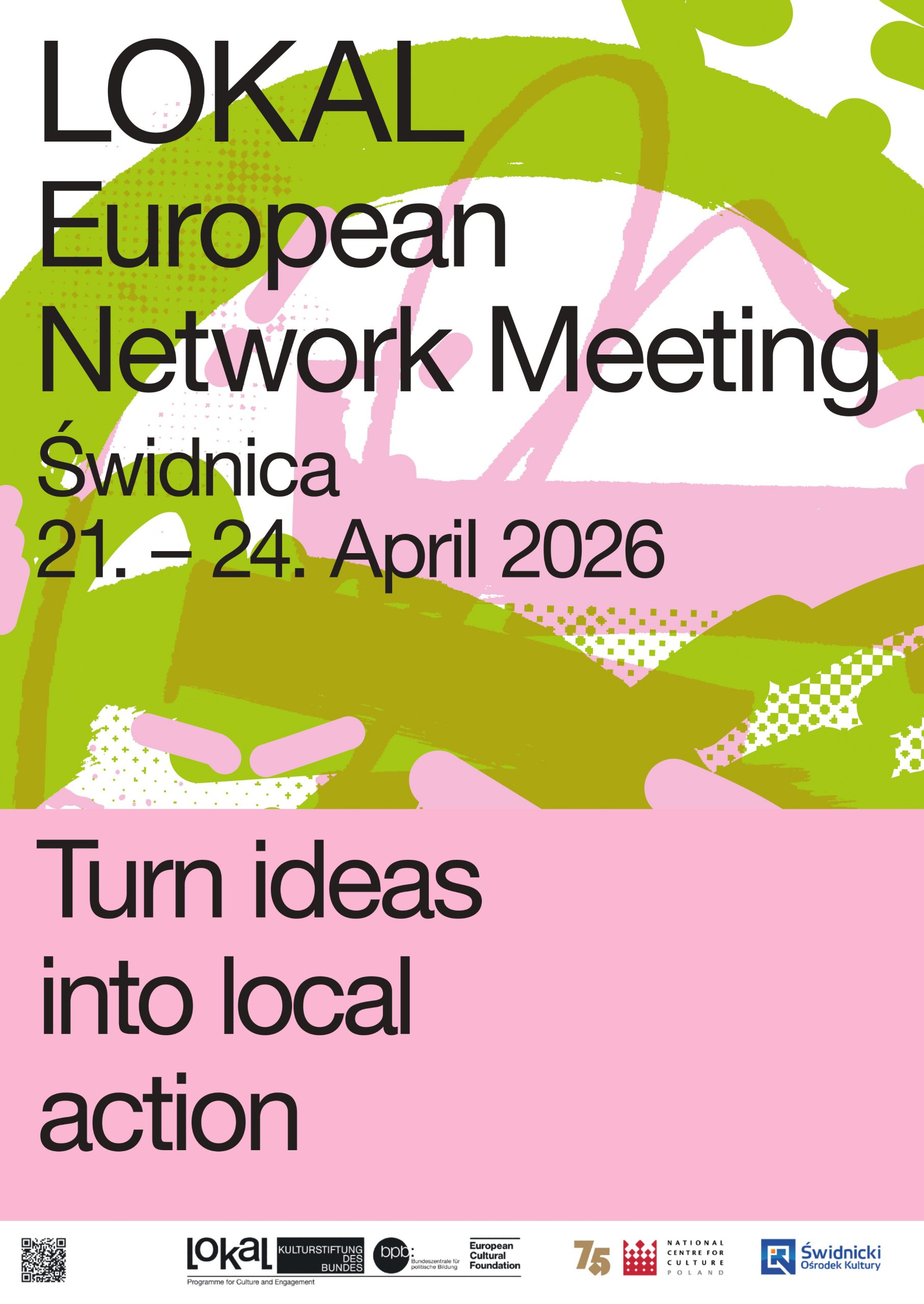 Spotkanie Sieciujące LOKAL to wspólna inicjatywa Federalnej Fundacji Kultury, Federalnej Agencji ds. Edukacji Obywatelskiej (bpb) i European Cultural Foundation realizowana we współpracy z Narodowym Centrum Kultury i Świdnickim Ośrodkiem Kultury.