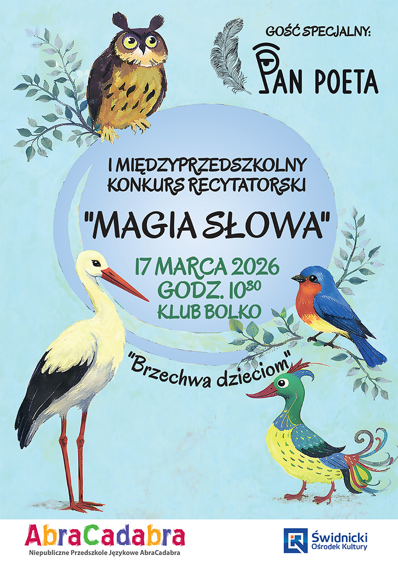 Świdnicki Ośrodek Kultury informuje o I Międzyprzedszkolnym Konkursie Recytatorskim „Magia słowa”.