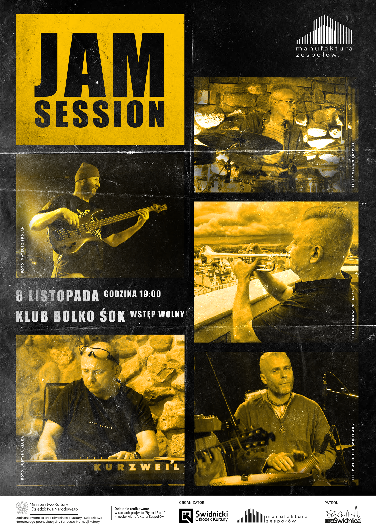 Zapraszamy na kolejny jam session! Tym razem na scenie Klubu Bolko wydarzenie poprowadzi zespół w składzie: Roman Bednarz (bas), Piotr Natanek (trąbka/flugehorn), Witek Kowaliszyn (konga), Andrzej Walczak (perkusja), Nadia Weder (instrumenty różne), Artur Wojtysiak (instrumenty klawiszowe).