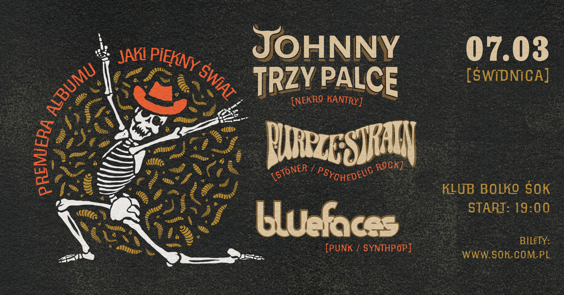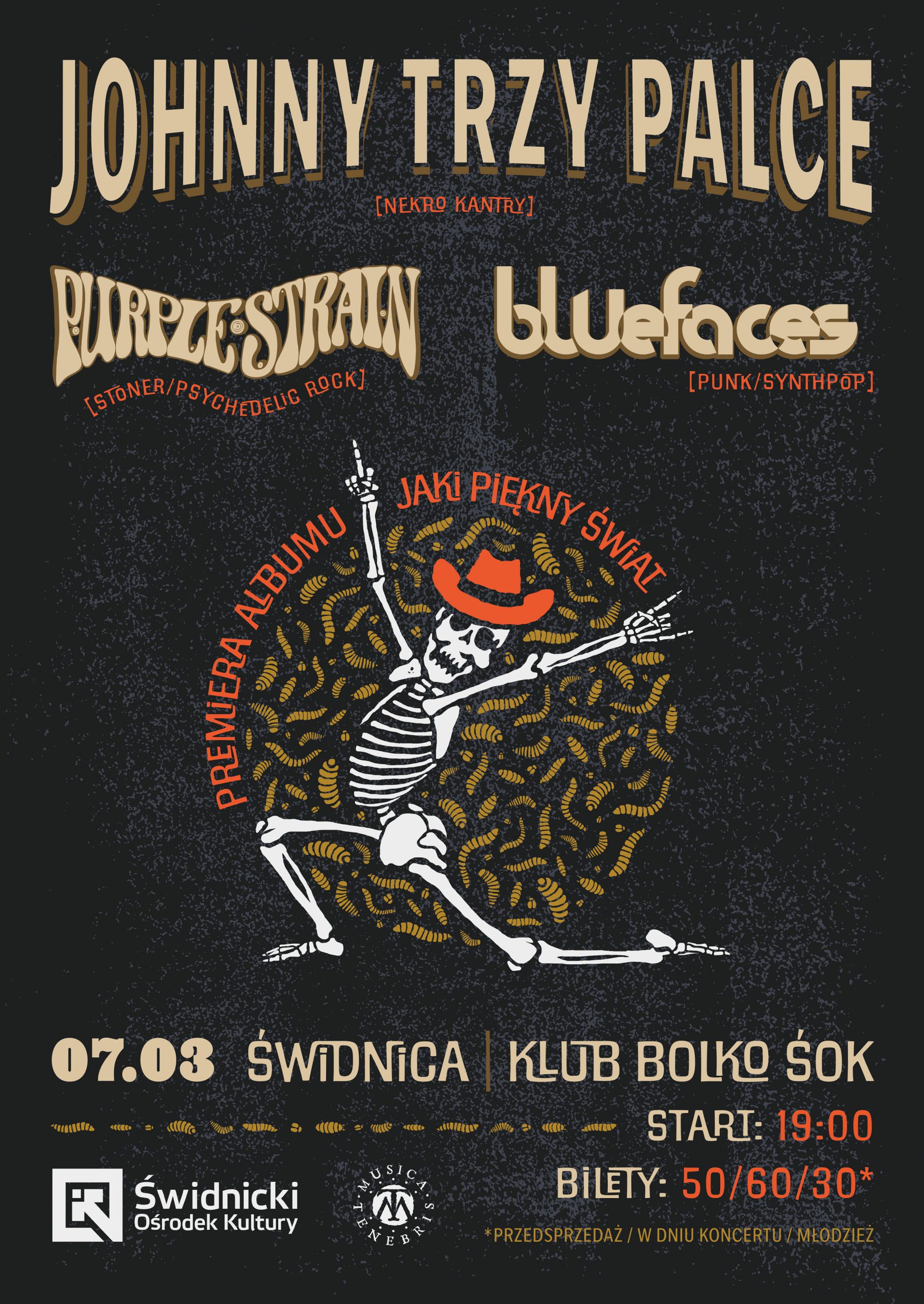 Świdnicki Ośrodek Kultury zaprasza na koncert premierowy płyty „Jaki piękny świat” zespołu Johnny Trzy Palce oraz zaproszonych gości: