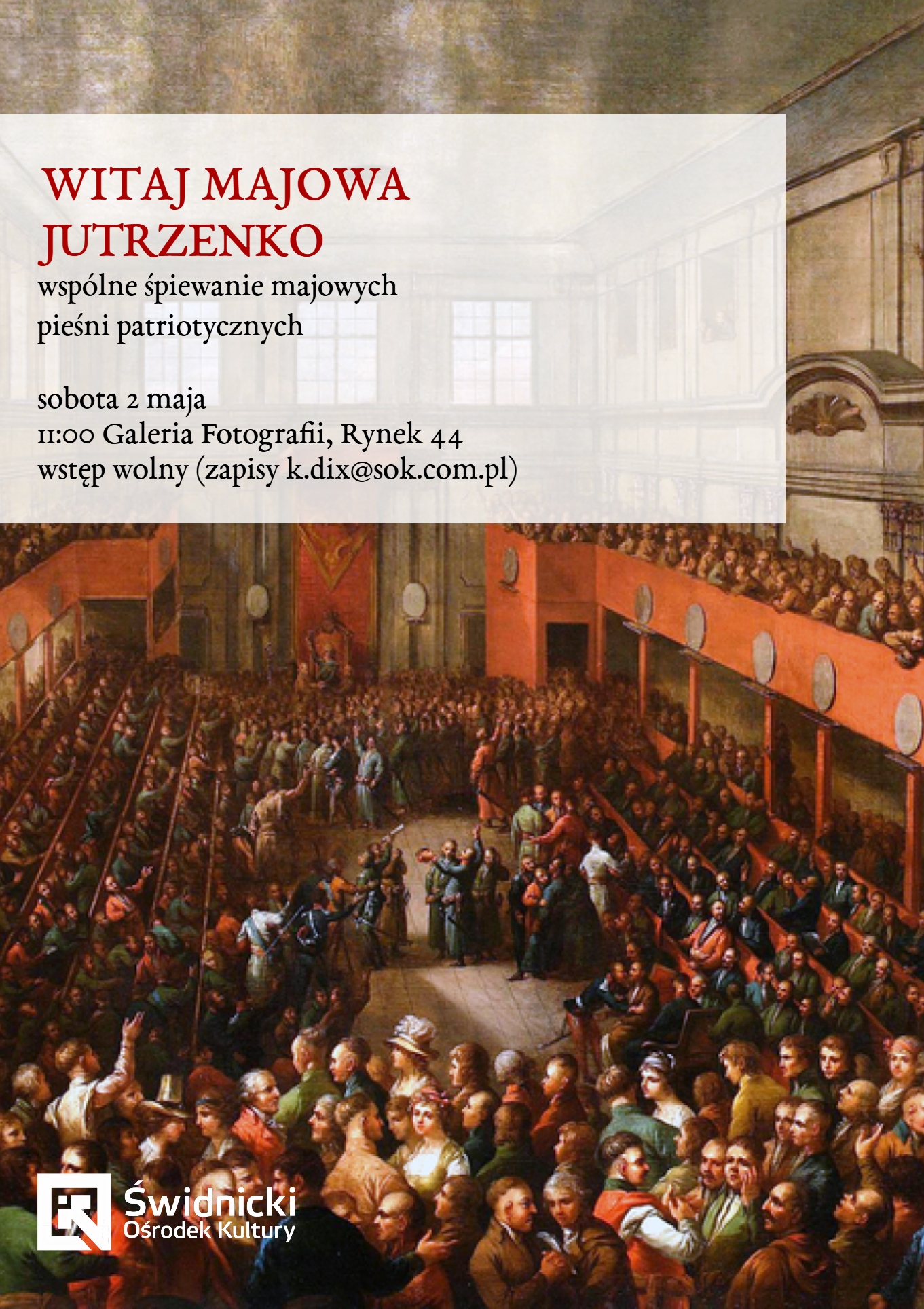Już w sobotę 2 maja o godz. 11:00 w Galerii Fotografii (Rynek 44) odbędzie się „Witaj Majowa Jutrzenko” – wspólne śpiewanie majowych pieśni patriotycznych. To doskonała okazja, by razem poczuć ducha tradycji i wspólnoty.