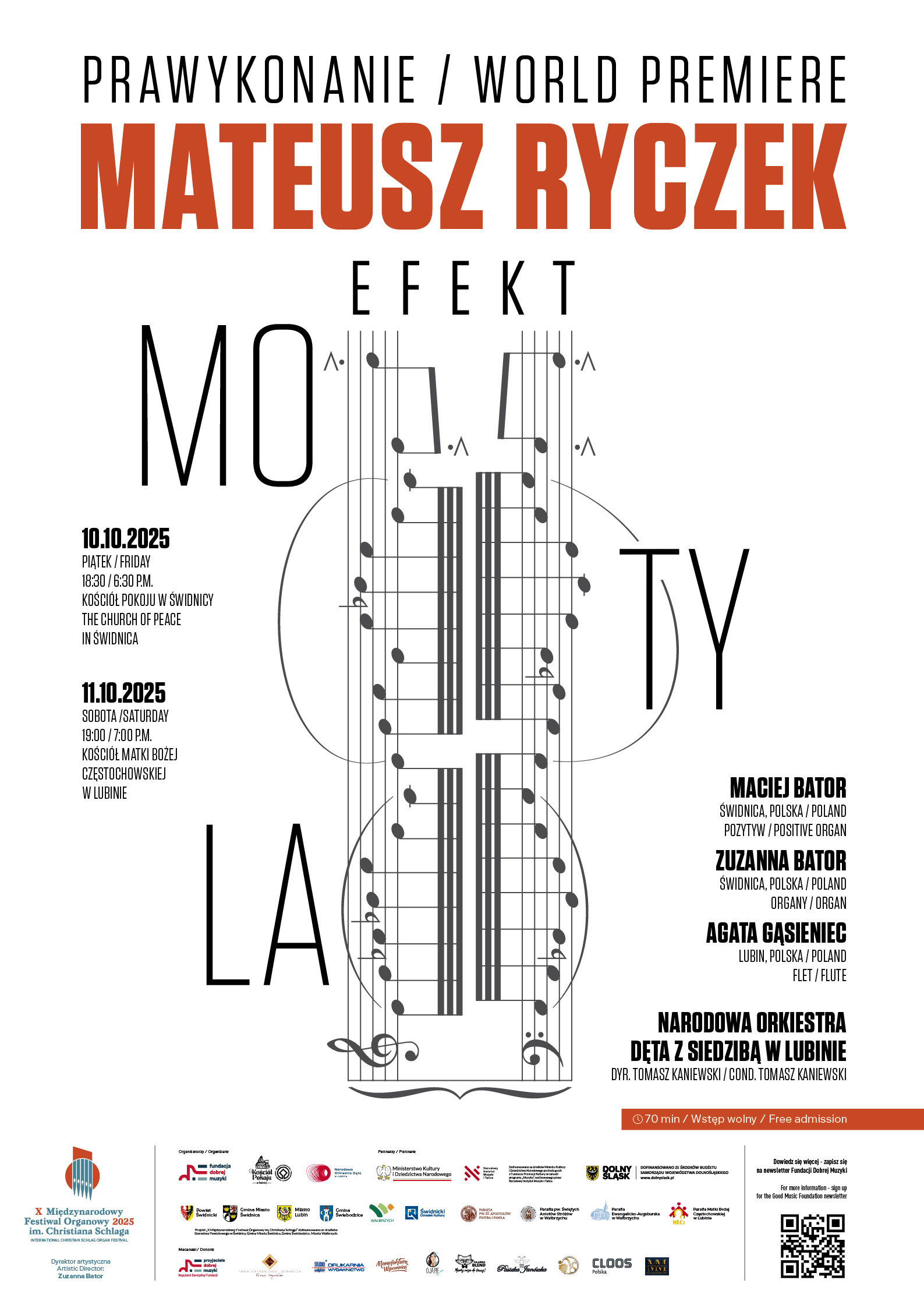 Fundacja Dobrej Muzyki i Narodowa Orkiestra Dęta z siedzibą w Lubinie zapraszają na niezwykłe wydarzenie w ramach jubileuszowej, dziesiątej edycji Międzynarodowego Festiwalu Organowego im. Christiana Schlaga. W piątek, 10 października 2025 roku, o godz. 18:30 w Kościele Pokoju w Świdnicy odbędzie się prawykonanie nowej kompozycji Mateusza Ryczka „Efekt Motyla”.