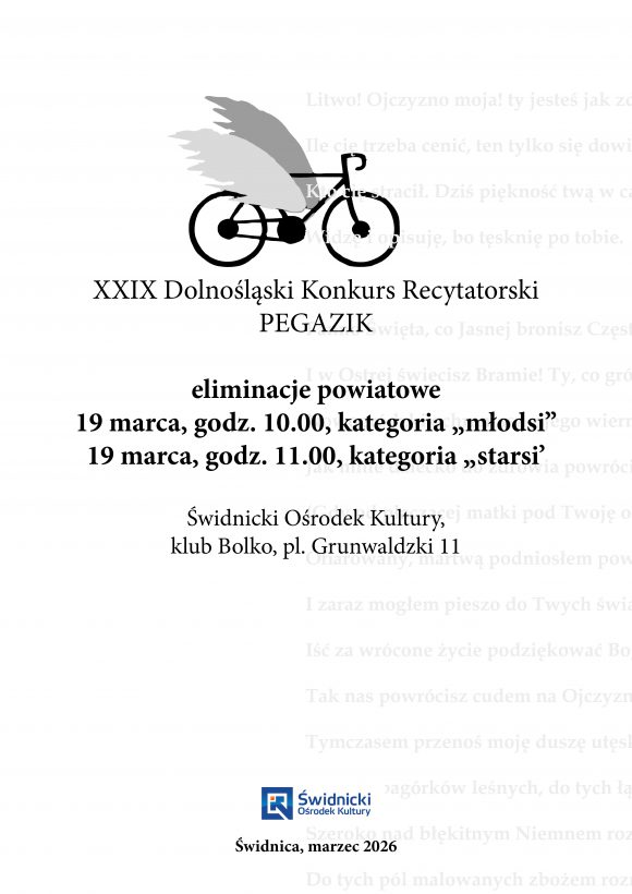 XXIX DOLNOŚLĄSKI KONKURS RECYTATORSKI PEGAZIK [ELIMINACJE POWIATOWE]