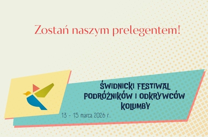 Podróż to coś więcej niż zmiana miejsca – to sposób na odkrywanie świata, ludzi i samych siebie. Z tej pasji do poznawania powstał Świdnicki Festiwal Podróżników i Odkrywców KOLUMBY, spotkania tych, którzy wyruszają w drogę z otwartym sercem i wracają z głową pełną historii. Jeśli podróże są Twoim żywiołem – zbierasz doświadczenia, przeżywasz przygody i chcesz się nimi podzielić – to właśnie Ciebie szukamy! Możesz opowiedzieć swoją historię podczas kolejnej edycji Festiwalu.